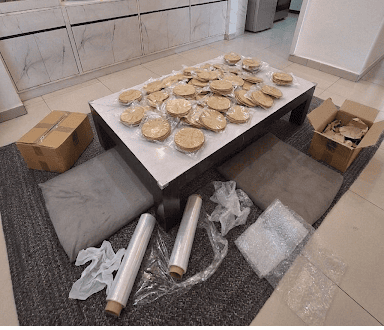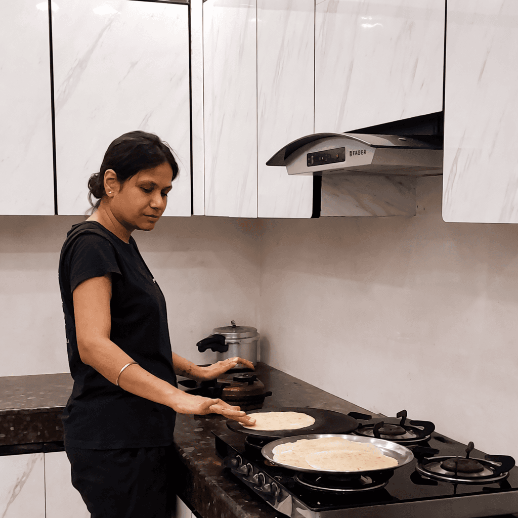 In the early days, every khakhra was shaped and roasted by hand in her own kitchen. She personally rolled hundreds and roasted tens of thousands over time — refining thickness, texture and roast levels with each batch. There were days when the kitchen felt more like a production floor than a home, but the learning never stopped. Even the home office quietly transformed into storage space, stacked with carefully packed boxes awaiting delivery — a small but determined operation built on belief and persistence.